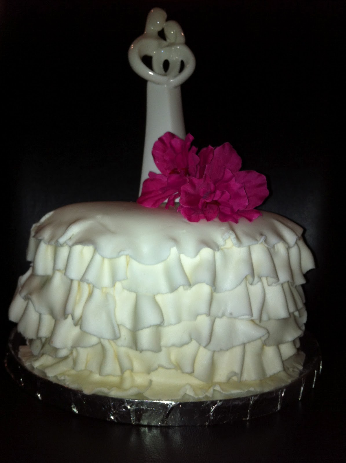 This is my practice cake. The final product will have more tiers and different flowers